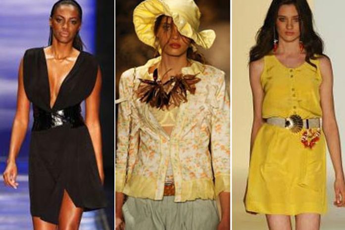 Para as saias e as partes inferiores dos vestidos vale todo recurso para criar volume: drapeados, tecidos com relevos ou texturas marcantes, estampas, listras horizontais, volumes balonês, franzidos ou babados.