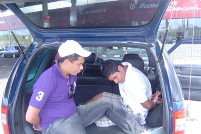 De nada adiantou, pois além de bater seu carro ontem, Antonio de Pádua desacatou os policiais alagoanos e foi flagrado com uma arma de calibre.38 que ele nega ser dele. Um outro menor de 17 anos também estava no veículo.
