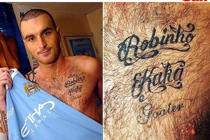 Chris Atkinson voltou a ser notícia na Inglaterra nesta quinta-feira. O torcedor do Manchester City, conhecido por ter tatuado Kaká no peito (a negociação acabou não se concretizando), deve tomar nova rasteira do destino com a iminente saída de Robinho para o Santos. Ele também gravou o nome do atacante no corpo.