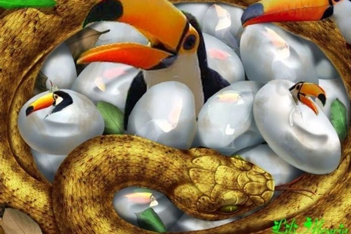 Daí, o Benedito tem que procurar outro galho e o problema é que, nesse outro galho, tem um ninho tucano.