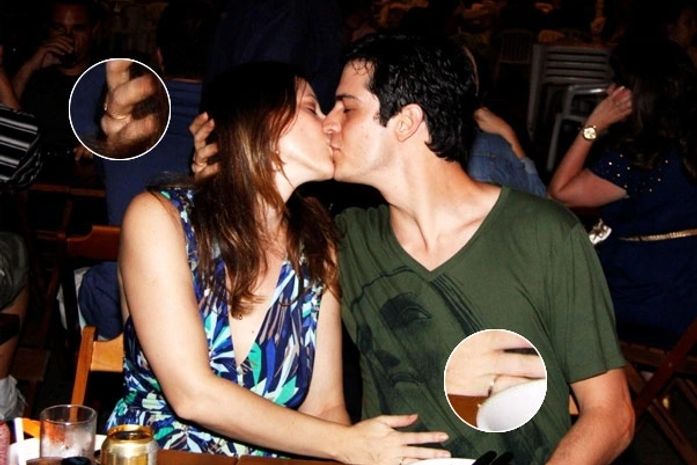 Mateus Solano e Paula Braun foram fotografados usando aliança na mão direita. O casal comemorou o aniversário de 29 anos do ator em bar no Leblon, Zona Sul Rio. Paula está grávida de dois meses e os dois passaram a noite em clima de romance. Será que eles planejam casamento em breve?