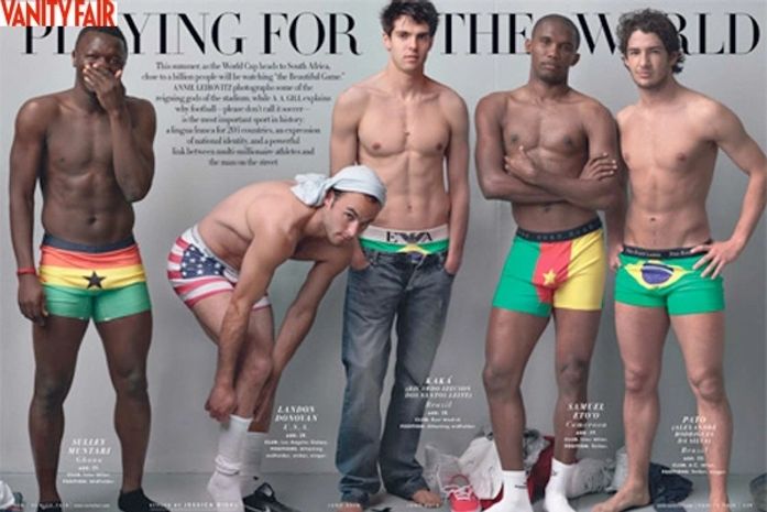 Enquanto a disputa pelo troféu da Copa do Mundo de 2010 não começa, a torcida feminina já pode comemorar. A revista de moda Vanity Fair acaba de divulgar um ensaio fotográfico com cinco astros do futebol mundial: Muntari (Gana), Donovan (Estados Unidos), Kaká (Brasil), Eto'o (Camarões) e Pato (Brasil).