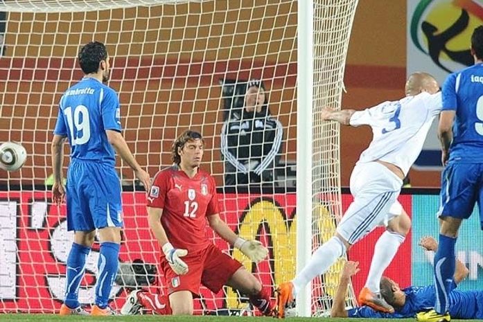 Em cima da Eslováquia, a Itália sofreu seu segundo gol e se viu em situação muito delicada. Aos 28min, depois de escanteio, Hamsik recolheu na ponta direita e recolocou a bola na área. Vittek, o carrasco italiano, se antecipou a Chiellini e finalizou sem chances para Marchetti.