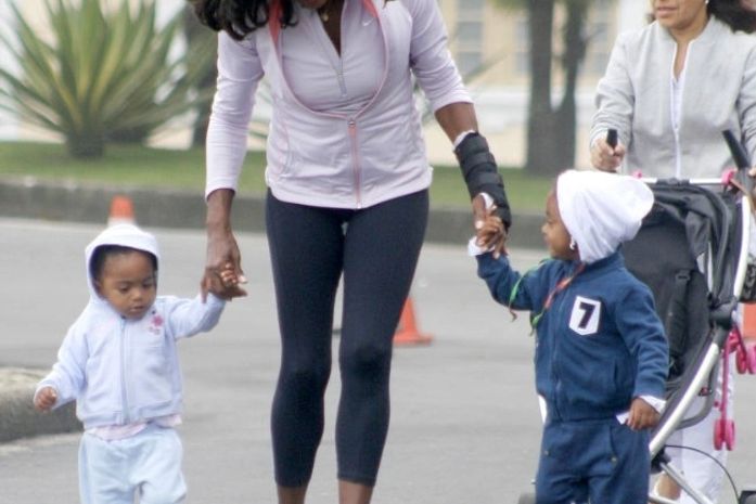 Glória Maria levou as gêmeas Maria e Laura para passear no final da manhã de domingo (18), no Rio de Janeiro. Mãe e filhas foram fotografadas no Leblon. A jornalista contou com a ajuda de duas babás.