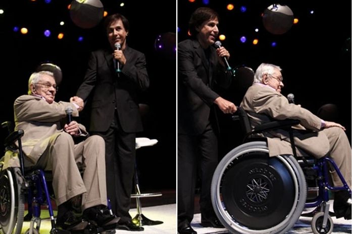 Chico se apresentou em uma cadeira de rodas e deixou o palco com o auxílio do colega.