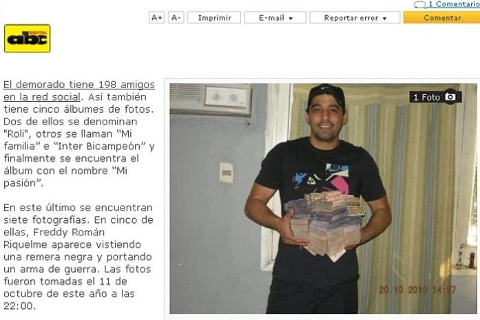 A polícia local chegou a Freddy depois de seguir um carro usado no crime. O veículo foi encontrado em posse do paraguaio. Para piorar, no celular do irmão da musa foram encontradas fotos dele com armas e dinheiro, além de números de telefone de alguns bandidos conhecidos.