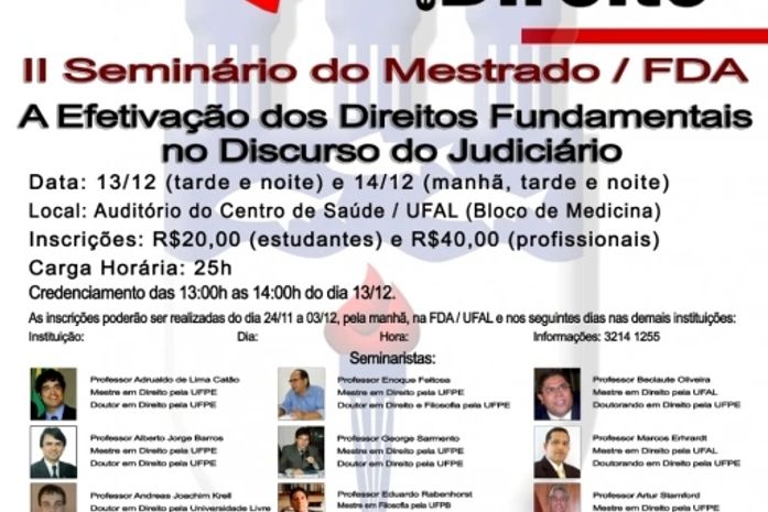 Dias 13 e 14 de dezembro, juristas da Região Nordeste se encontrarão em Maceió para discutir a efetivação dos direitos fundamentais no discurso do Judiciário.