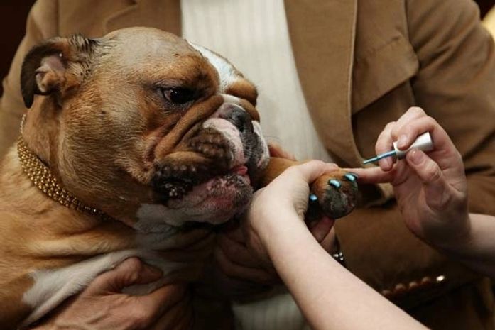 Um spa para cães, que foi lançado nesta terça-feira na loja de departamentos Harrods, no bairro de Knightsbridge, em Londres, no Reino Unido, oferece até serviço de "manicure canina". Durante o lançamento, o cão chamado "Caesar", que pertence ao designer de sapatos Patrick Cox, teve as unhas pintadas.