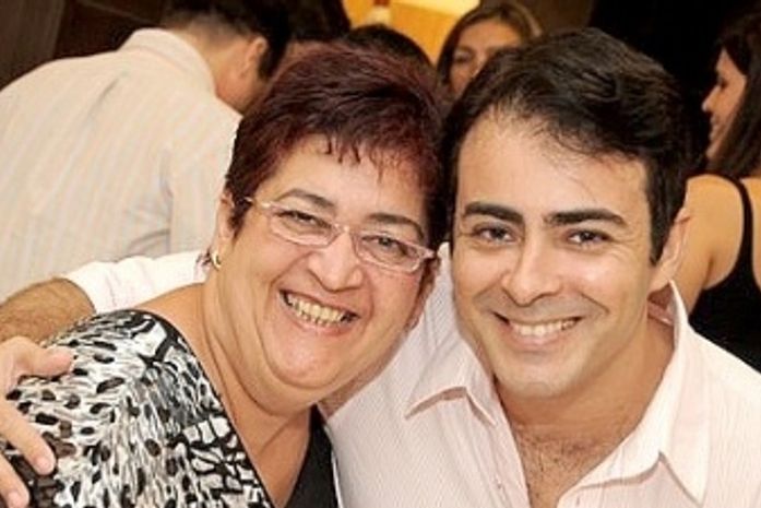 A cake designer Rosa Maria parabenizando James Silver-Salada Magazine pela passagem de mais uma primavera