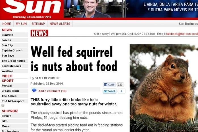 O americano James Phelps, de 51 anos, que mora no estado de Michigan (EUA), começou a alimentar um esquilo no início deste ano, mas ficou assustado quando o animal ficou obeso, segundo reportagem do jornal inglês "The Sun".