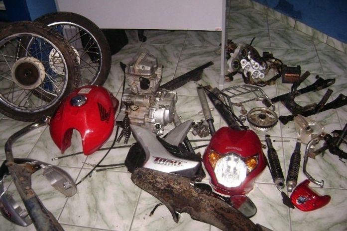 Ao entrar na residência, policiais encontram motos desmontadas, vários documentos automotivos, uma espingarda e um revólver, ambos com calibre 32, e onze munições intactas. Petrúcia Fagundes Gouveia, tia de Aelton José, também foi presa e levada para delegacia do município.