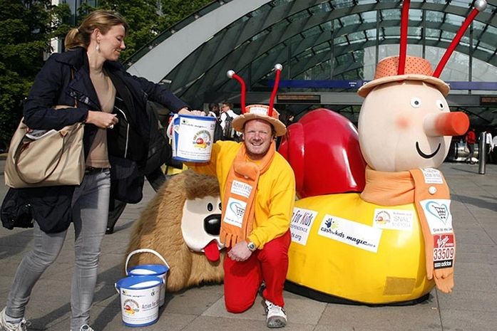 Lloyd Scott, de 49 anos, participou de uma maratona em Londres, na Inglaterra, fantasiado como Brian, o Caracol, do desenho Magic Roundabout.