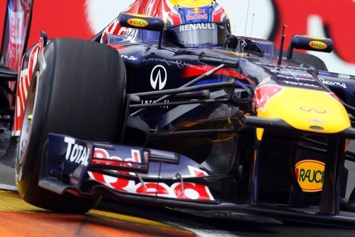 A pista suja e escorregadia do circuito de rua de Valência fez algumas vítimas. Nada sério, apenas uma série de derrapadas em 1h30m de sessão. Talvez, por isso, poucos quiseram se arriscar. Ainda sem que as mudanças de regulamento da FIA fizessem efeito, o líder do campeonato, Sebastian Vettel, tirou o pé do acelerador e fez apenas o 16º tempo. Assim, coube ao australiano Mark Webber, companheiro do alemão na RBR, ser o mais rápido do primeiro treino livre do GP da Europa, com 1m40s403. O segundo colocado foi o surpreendente Vitaly Petrov, da Renault, com 1m41s227.