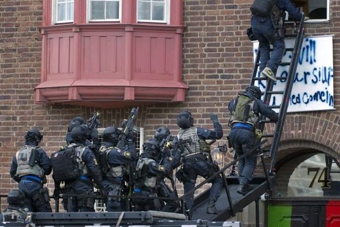 A polícia foi avisada da invasão porque os manifestantes ativaram sem querer um sinal de alerta. Cerca de 15 patrulhas foram enviadas ao local.