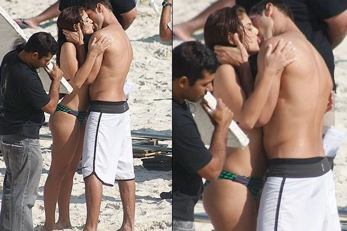 Paloma Bernardi foi vista aos beijos com Leonardo Cavali, seu par na novela "Insensato Coração".