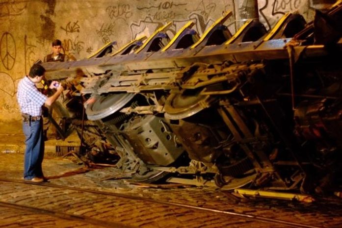 O bonde faz o trajeto Lapa-Santa Teresa, centro do Rio de Janeiro. Segundo informações preliminares, a composição teria perdido o controle e batido em dois postes antes de tombar.