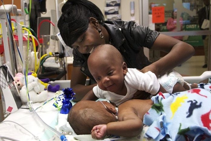 Dois gêmeos siameses finalmente puderam se abraçar de frente após passarem por uma cirurgia de 13 horas para separá-los no hospital infantil Le Bonheur, em Memphis, nos Estados Unidos. Os irmãos nasceram em janeiro de 2011, unidos pela pélvis e pela parte inferior da espinha.