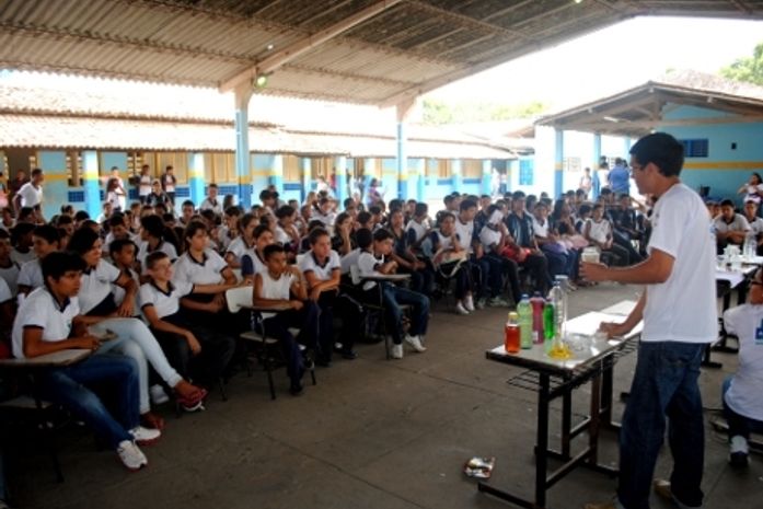 Na manhã desta terça-feira (18), graduandos do curso de Química da Ufal, sob a coordenação da professora Laura Souza, do Laboratório de Química do campus de Arapiraca, realizaram uma série de experimentos para os alunos do 8º e 9º anos da Escola Municipal Hugo Lima, no centro da cidade.