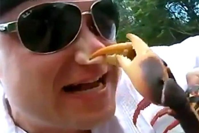 Brincadeiras com caranguejos nem sempre acabam. Um vídeo publicado na internet mostra o crustáceo cravando suas garras no nariz de um homem enquanto ele exibia o animal diante da câmera. Postado no dia 25 de outubro, o vídeo recebeu mais de 30 mil acessos.