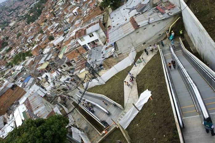 A cidade de Medellín, na Colômbia, inaugurou na segunda-feira (26) escadas rolantes na favela conhecida como "Comuna 13". Segundo a administração local, o sistema vai facilitar a mobilidade dos habitantes da favela, beneficiando cerca de 12 mil pessoas. As escadas rolantes foram instaladas em substituição a 350 escadas de concreto.