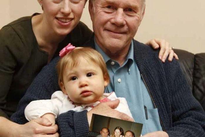 Julia Gonyer (à esquerda) posa com seu pai, Richard Stiff, e sua filha, Kourtney Gonyer, na casa deles em Sylvania Township, no estado americano de Ohio. Todos eles nasceram no dia 4 de janeiro, assim como Marshall Stiff, o pai de Richard, já morto, e que aparece na foto. A foto foi feita na celebração dos aniversários deles, em 1995. Todos nasceram no mesmo dia em partos naturais, não programados