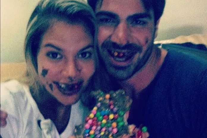 Os ex-BBBs Adriana e Rodrigão estão aproveitando cada momento que podem ficar juntos. Depois de ir à praia, o casal curtiu a noite desta quinta-feira, 9, juntinho. Rodrigão postou em sua página no Twitter foto em que os dois aparecem sujos de chocolate. “Essa é a consequência de namorar uma menina de 21 anos”, escreveu Rodrigão com bom humor em sua página no microblog.