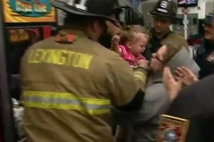 Os bombeiros tiveram de usar uma serra para cortar o cadeado e resgatar a menina.