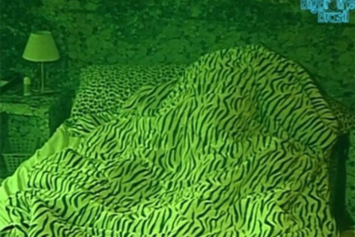 Os dois esquentaram o clima sob o edredom e no vídeo divulgado até mesmo no site oficial do BBB é possível a respiração ofegante, além do movimento de sexo debaixo das cobertas. Mais cedo, durante a festa, Renata e Rafa deram uma fugidinha para trocar de roupa. Na ocasião, o casal já havia beijado muito na cama.