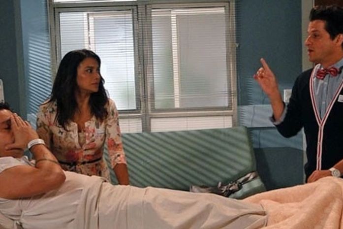 Uma enfermeira passa pela sala de espera do hospital e Celeste se apresenta, já que está ansiosa esperando notícias do marido. “Eu sou a esposa”, diz ela. Crô acrescenta: “E eu sou a outra!”. Sem entender nada, Celeste pergunta para o mordomo: “Que história é essa de ser a outra do meu marido, hein, seu Crodoaldo Valério?”.