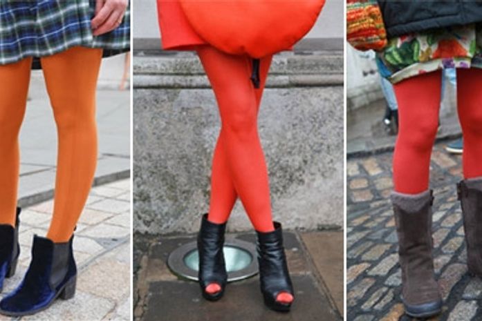 O tangerina, tom eleito do ano de 2012, dominou a paleta de cores de meias nas semanas de moda da Europa, incluindo tons intensos e tons mais fechados como o laranja damasco e o queimado.