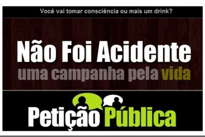 Cansado de ver tantas e tantas mortes, iniciei no dia 15/10/2011 a campanha “Não Foi Acidente” para coletar assinaturas para o projeto de lei de iniciativa popular objetivando alterar a legislação de trânsito brasileira, que hoje é tão branda para os que bebem, dirigem e matam. O projeto cresceu e, em menos de 3 meses de trabalho, juntamos quase 200.000 assinaturas e muita gente do bem.