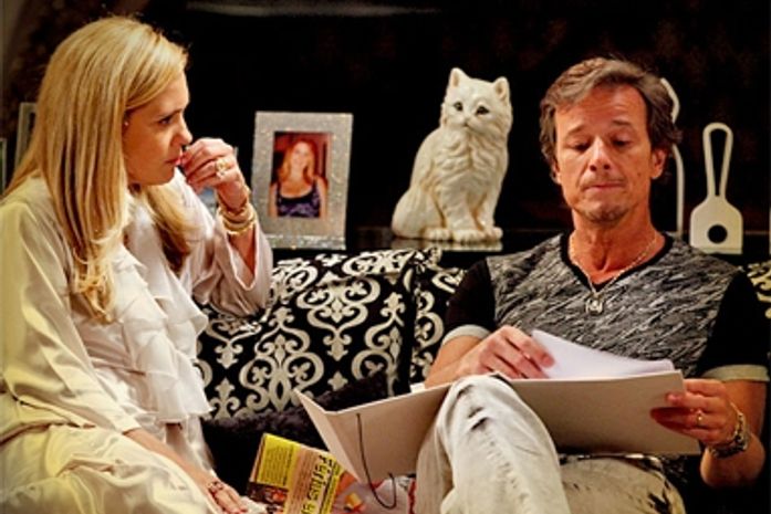 Em Avenida Brasil, da Globo, revoltada pelo fato de o falso sequestro ter dado errado, Carminha (Adriana Esteves) humilha Max (Marcello Novaes) na frente dos bandidos, dizendo que ele não serve para nada.