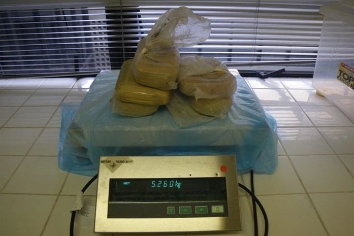 Durante as revistas, os policiais se depararam com uma bagagem suspeita e, ao abri-la, encontraram cinco tabletes contendo substância aparentando ser entorpecente. As bagagens pertenciam a W.C.O. Segundo o jovem, a droga seria entregue a uma pessoa em Maceió, cujo nome não foi revelado. Ele informou ainda que cada tablete, contendo cerca de um quilo, usualmente é vendido a R$ 14 mil na cidade.
