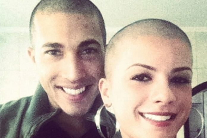 A panicat Bani não está sozinha em seu sacrifício. No domingo, após ter sido obrigada a raspar a cabeça ao vivo no Pânico na Band, a bela teve a solidariedade do colega Bola, que também ficou careca no ar. Depois, em casa, Babi teve uma surpresa: o namorado Maiko fez a mesma coisa.