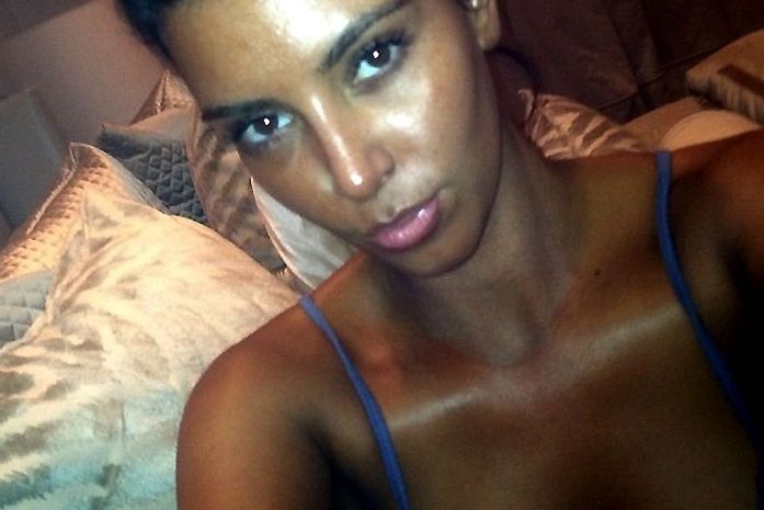 Kim Kardashian postou em seu Twitter neste sábado (12) uma foto em que aparece com um generoso decote e super bronzeada. A socialite procurou levar com bom humor o fato de ter exagerado no bronzeamento artificial.