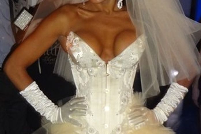 Ana Paula Evangelista, musa da escola de samba Mocidade, desfilou seu corpão no evento Old Fashion, em Milão, na Itália. A morena usou um modelito de noiva sexy, com direito a decotão e liga, assinado pela estilista ítalo-brasileira Daniela Colzani.