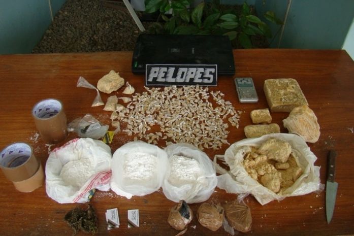 Ao chegar ao local informado, os policiais observaram um indivíduo correndo e adentrando rapidamente na residência citada na denúncia. Os militares entraram na casa, fizeram uma varredura e encontraram 365 pedras de crack, aproximadamente 2,2kg de crack em barras, 310g de cocaína, um papelote de maconha, uma balança de precisão, uma faca tipo peixeira, sete lâminas, quatro fitas adesivas, além de várias sacolas plásticas que provavelmente seriam utilizadas na embalagem da droga.
