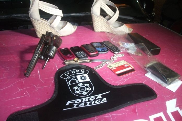 De acordo com informações da Polícia, no momento da abordagem os acusados jogaram um revolver calibre 38 em um canteiro. A arma e o material foram levados para a Central de Polícia, onde os acusados foram autuados em flagrante.