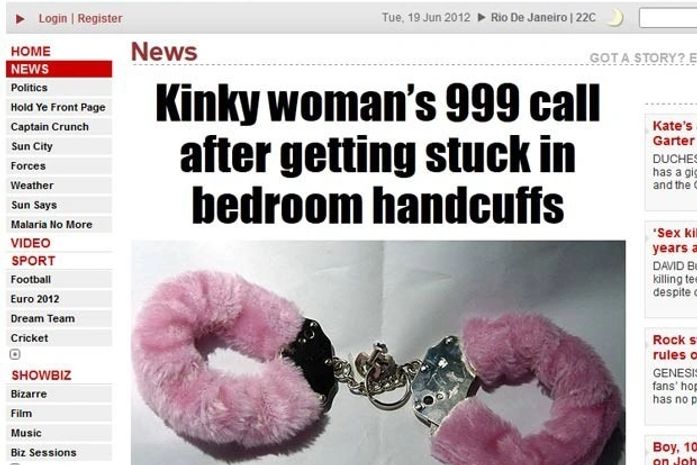 Uma jovem de 22 anos ficou constrangida depois que teve que chamar os bombeiros em Northampton, no Reino Unido, ao ficar presa em um par de algemas durante um fetiche sexual no último domingo, segundo o jornal inglês "The Sun".