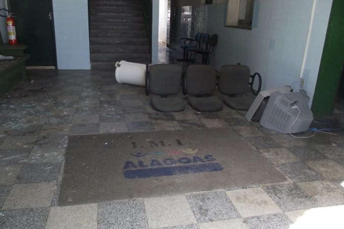 No final da manhã deste sábado (23), a sede do Instituto Médico Legal de Maceió (IML) foi apedrejada. Familiares, revoltados com a não liberação de corpos, invadiram o órgão. Vidros, uma televisão e um computador foram destruídos durante a ação.