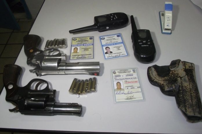 No momento da abordagem, os acusados apresentaram carteiras de agentes penitenciários falsificadas. A documentação foi analisada por um funcionário do sistema prisional.