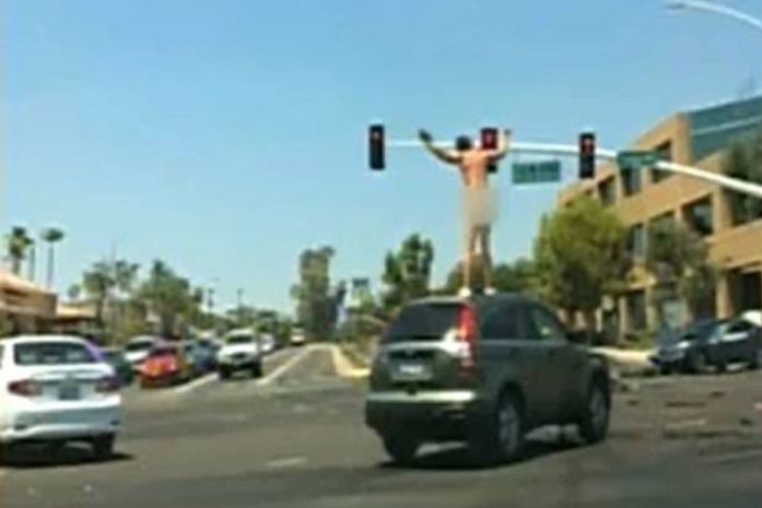 Um motorista identificado como John Brigham, de 45 anos, protagonizou um incidente bizarro em Scottsdale, no Arizona (EUA). Brigham saiu de seu carro, tirou a roupa e subiu em outro veículo em um cruzamento movimentado da cidade, segundo a TV "ABC 15".
