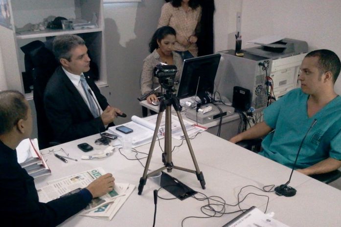 Indagado pelo juiz Maurício Brêda sobre onde estava quando Giovanna sumiu, Bernardino afirmou que estava na casa da mãe e depois entrou em contradição ao tentar explicar onde a genitora reside.