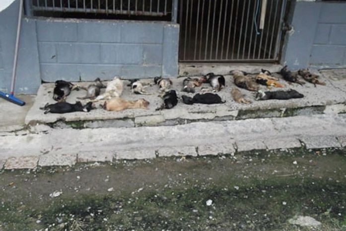 Os protetores de animais dizem que os cães sofreram um processo de eutanásia, mesmo aparentemente saudáveis. A polícia foi chamada no local e, após a perícia realizada, foram encontrados 30 animais mortos dentro de um freezer. Sendo três cães adultos e 27 filhotes.