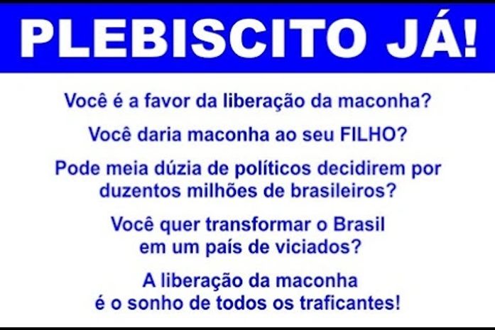 75% da população no Brasil é contra a legalização da maconha. Revelação do Segundo Levantamento Nacional de Álcool e outras Drogas, realizado em 149 municípios brasileiros pela Universidade Federal de São Paulo, Instituto Nacional de Políticas Públicas do Álcool e outras Drogas, Fundação de Amparo à Pesquisa do Estado de São Paulo e pelo Conselho Nacional de Desenvolvimento Científico e Tecnológico. Os resultados foram apresentados a médicos e imprensa , na UNIFESP, pelo coordenador da Unidade de Estudos de Drogas, psiquiatra Ronaldo Laranjeira.