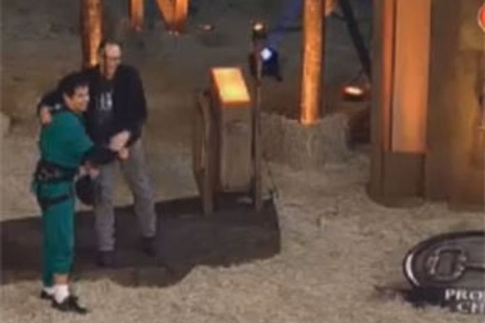 Os peões ficaram presos por um cabo de segurança, que funcionava como uma tirolesa. Cada peão que desistia e se soltava da barra, escorregava pela tirolesa até o meio do Campo de Provas.