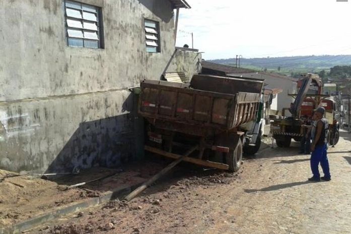 Sem freios o caminhão colidiu na parede de uma residência, mas ninguém ficou ferido. Para retirar o caminhão do local foi necessária uma retroescavadeira e um caminhão do tipo guincho, que com ajudar de cabos de aços fizeram o serviço.