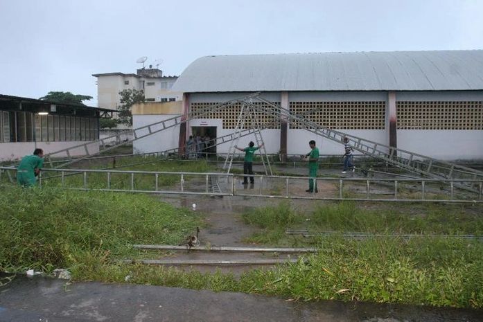 Enquanto a empresa realizava a instalação das tendas, um espaço localizado ao lado do ginásio passou por limpeza e retirada de entulhos. Este será o local utilizado pelos alunos da Escola Théo Brandão para a prática esportiva, durante o período que o ginásio estiver sendo utilizado para acolher os alunos da Rosalvo Lôbo.