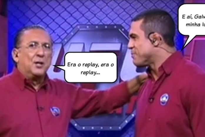 Por isso, nas duas últimas transmissões do UFC na Globo, a emissora exibiu VTs de lutas anunciando como se fosse ao vivo: aconteceu na vitória de Junior Cigano sobre Frank Mir, e também na “luta do século” entre Anderson Silva e Chael Sonnen. Será que o mesmo vai acontecer em Jones x Belfort?