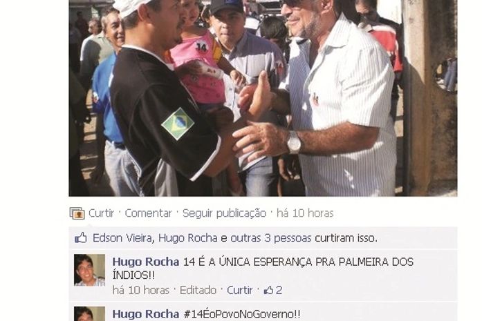 Veja a foto ao lado, quando o irmão da desembargadora Everaldo Simplício enaltece via rede social o candidato Petrúcio Barbosa(PTB).